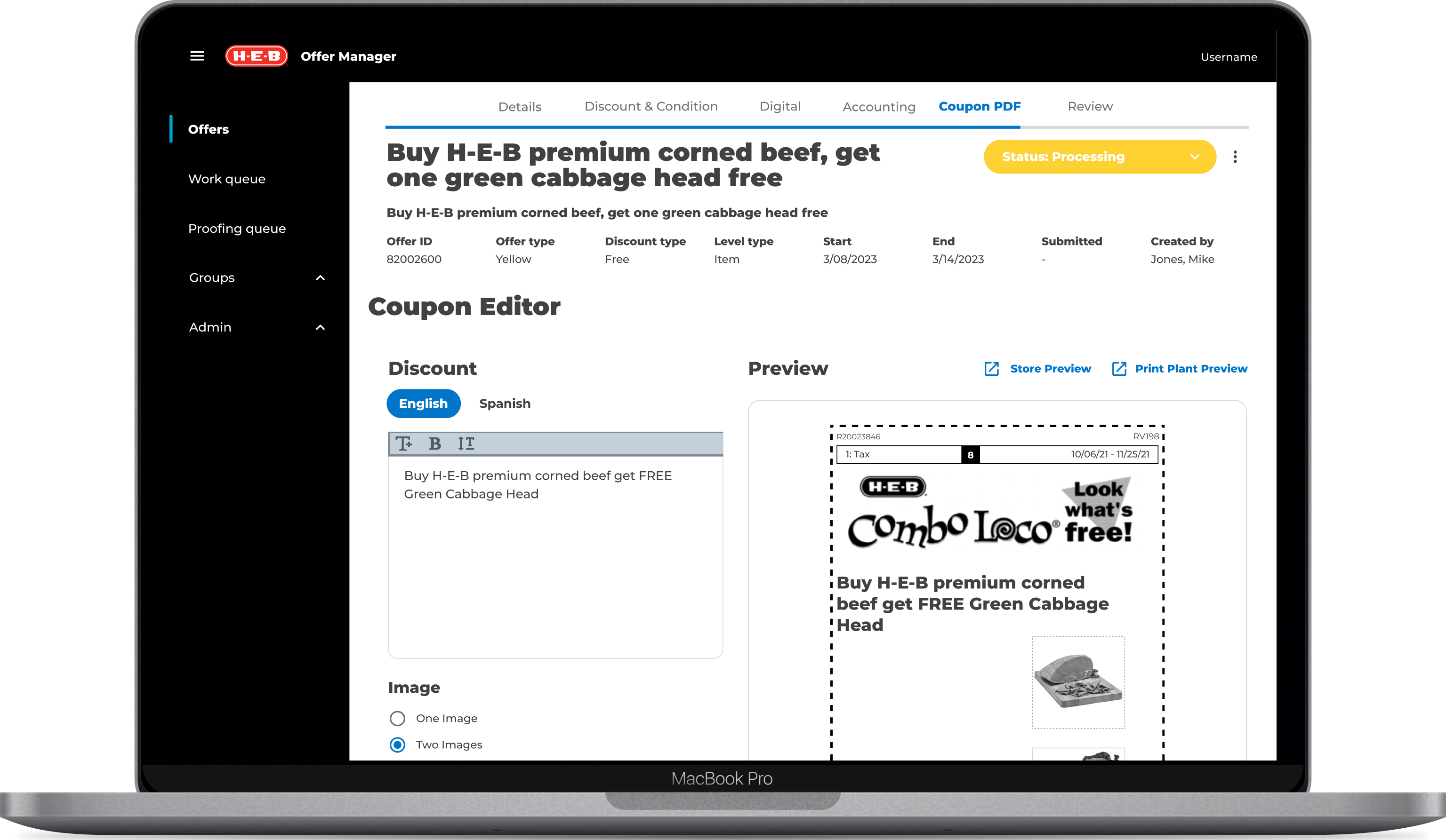 Offer Manager is an internal tool used by H-E-B partners and suppliers to create, manage, and launch promotional offers. I led user research and design to streamline workflows, reduce duplication, and align the tool with real-world planning needs, improving both efficiency and adoption.